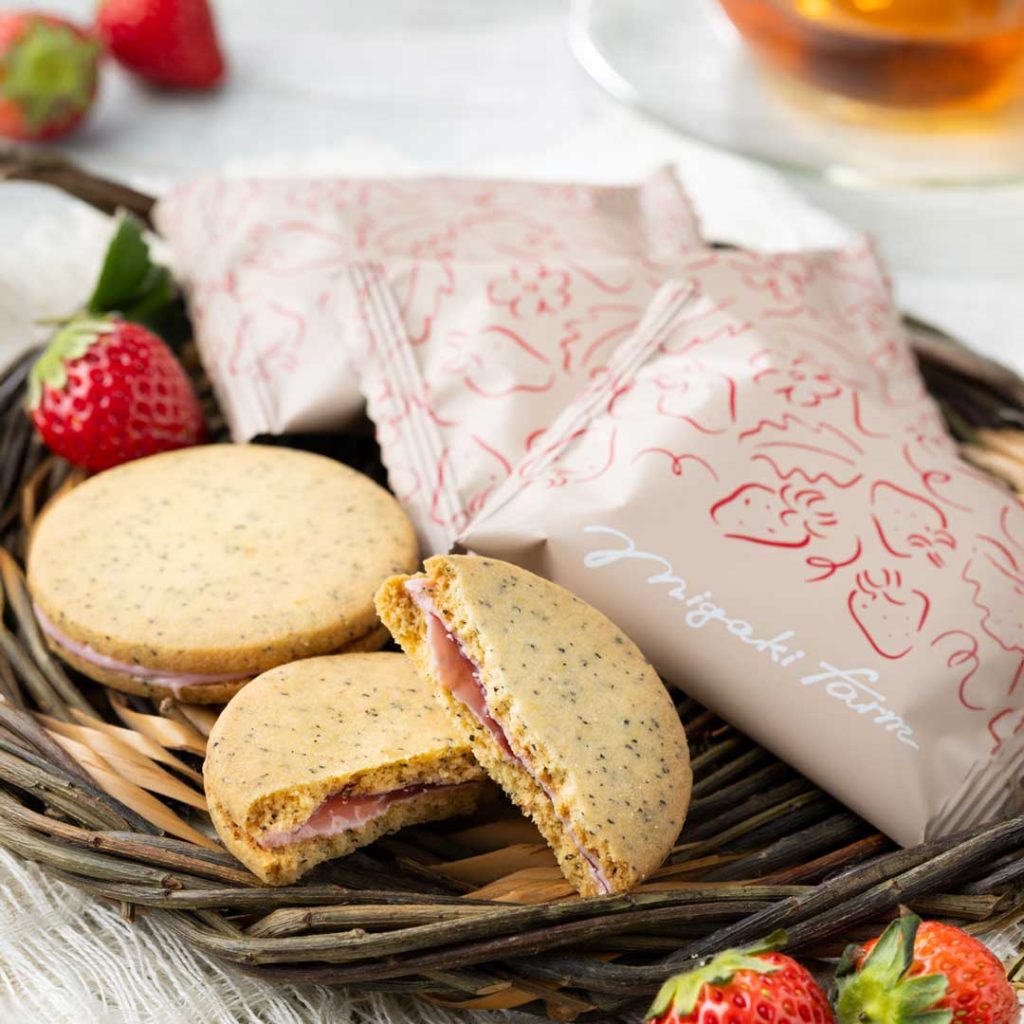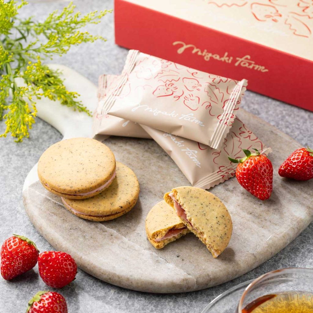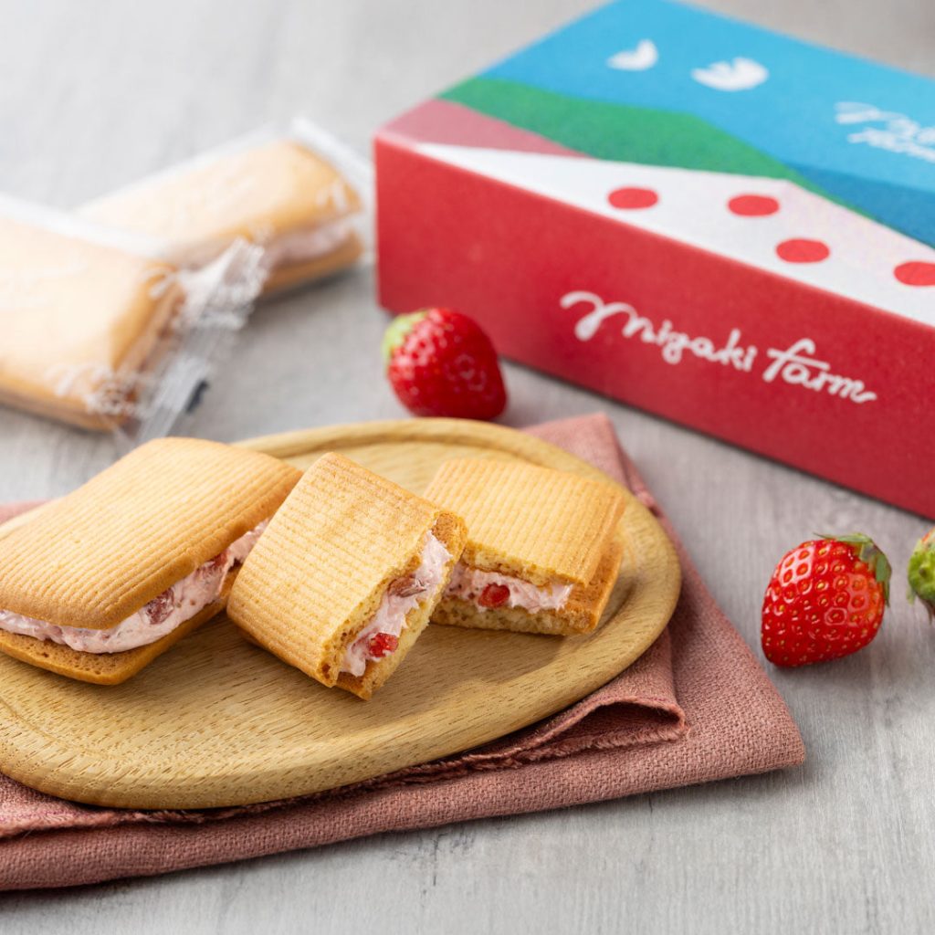 新しい東北のお土産として、ミガキイチゴを原料に「ミガキファームクラフト」という新ブランドでスイーツを販売開始しています。大人気のイチゴバターサンド(4個入り)、イチゴフィナンシェ(4個入り)、イチゴミルクサンドクッキー(4個入り)のセット商品となります。いずれも宮城限定販売商品となります。